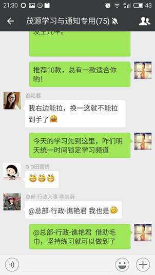 为了让员工有一个健康的身体,做到劳逸结合,行政人事部特为大家收集了一些健康方面的知识包括办公室保健、饮食睡眠与健康、体育锻炼与健康、心理健康等方面的健康小常识还特别针对我们的销售服务人员的工作特点如经常需要饮酒应酬、熬夜加班,还提供了常用醒酒方法、熬夜恢复技巧等。大家对于自身的健康都很重视,在学习期间大家都积极跟着练习保健操。